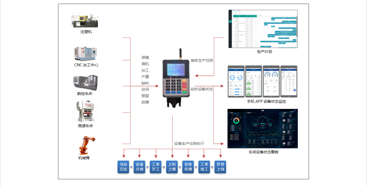 a) 鴻云智能終端-設(shè)備聯(lián)網(wǎng):工人全面管理作業(yè)支持,人機(jī)料協(xié)同控制