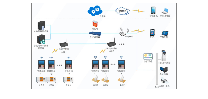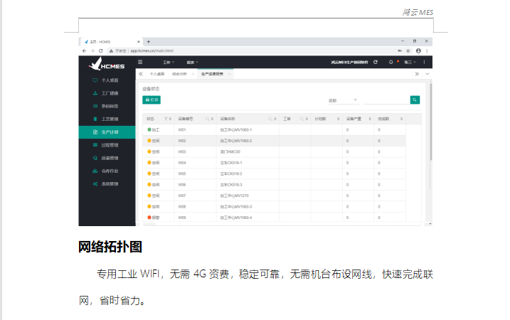 無(wú)需機(jī)臺(tái)布線,通過(guò)專(zhuān)用工業(yè)WIFI實(shí)現(xiàn)無(wú)線聯(lián)網(wǎng),穩(wěn)定可靠,相比4G網(wǎng)絡(luò)節(jié)省費(fèi)用,比一般WIFI穩(wěn)定可靠。