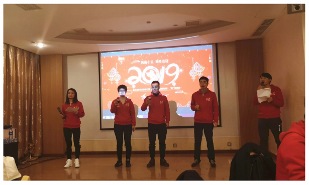 金華金辰的迎新晚會在一片紅色的海洋里拉開帷幕,所有小伙伴都著公司紅艷文化衫,望未來幸福年; 公司總經(jīng)理李劍忠先生對2018年工作進行了總結(jié)匯報,帶領(lǐng)我們一起回顧了過去一年取得的成績,以及開拓的領(lǐng)域,并借此機會總結(jié)經(jīng)驗,提出了對未來的規(guī)劃、建議和要求,為我們在新的一年里順利展開工作明確方向。