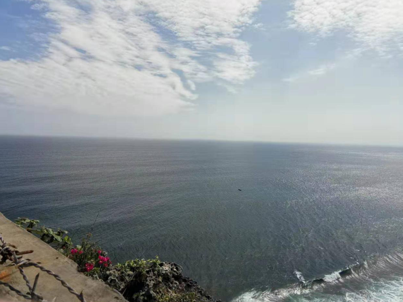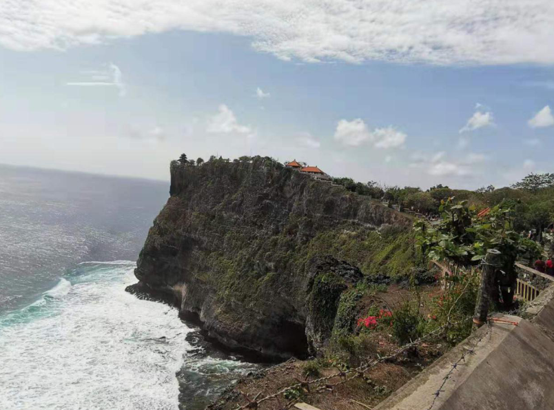 午餐后,去了烏魯瓦圖斷崖(情人崖)。這里海浪拍打著懸崖,海鳥(niǎo)在空中翱翔,景色非常迷人。與海神廟岸邊公園相似,情人崖上也遍布各種帶有宗教色彩和巴厘島特色的石雕,這些雕塑造型圓潤(rùn),線(xiàn)條卻無(wú)比繁復(fù),足可見(jiàn)出工匠的巧手妙思。更有熱帶風(fēng)情的是,不少神像的耳邊還插著一朵當(dāng)?shù)刈疃嘁?jiàn)的奶黃色雞蛋花,巴厘人的細(xì)膩多情可見(jiàn)一斑。在情人崖有許多猴子,特別猖獗,會(huì)搶東西,除非用吃的或錢(qián)引誘,要不沒(méi)法取回。