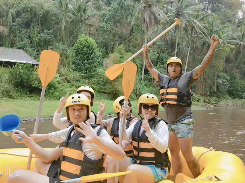 據(jù)說(shuō)巴厘島自費(fèi)水上活動(dòng)首推的是著名漂流阿勇河,阿勇河長(zhǎng)11公里,流經(jīng)上有22處急流點(diǎn),兩岸均是原始森林的變換景象。水比較小,刺激程度一般,但可以欣賞到絕佳的熱帶雨林風(fēng)景和瀑布。我們的小伙伴這水仗打的那時(shí)相當(dāng)過(guò)癮~~