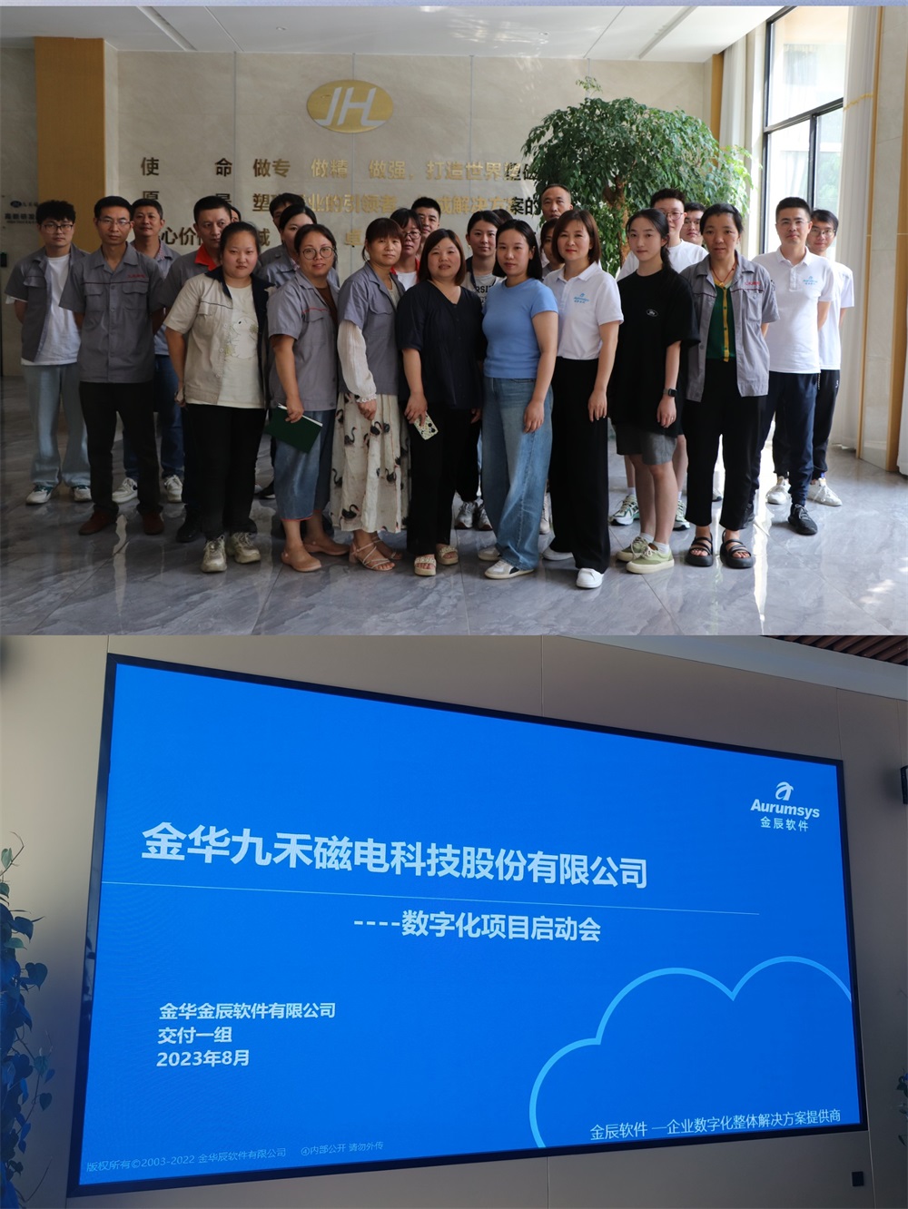 2023 年 8 月16 日,金華金辰軟件有限公司(以下簡(jiǎn)稱金辰軟件)與金華九禾磁電科技股份有限公司(以下簡(jiǎn)稱九禾磁電)共同舉辦的數(shù)字化啟動(dòng)會(huì)在金華磐安圓滿完成。這次會(huì)議標(biāo)志著九禾磁電數(shù)字化轉(zhuǎn)型邁出了重要的一步,同時(shí)也展示了金辰軟件助力企業(yè)數(shù)字化升級(jí)的強(qiáng)大實(shí)力。